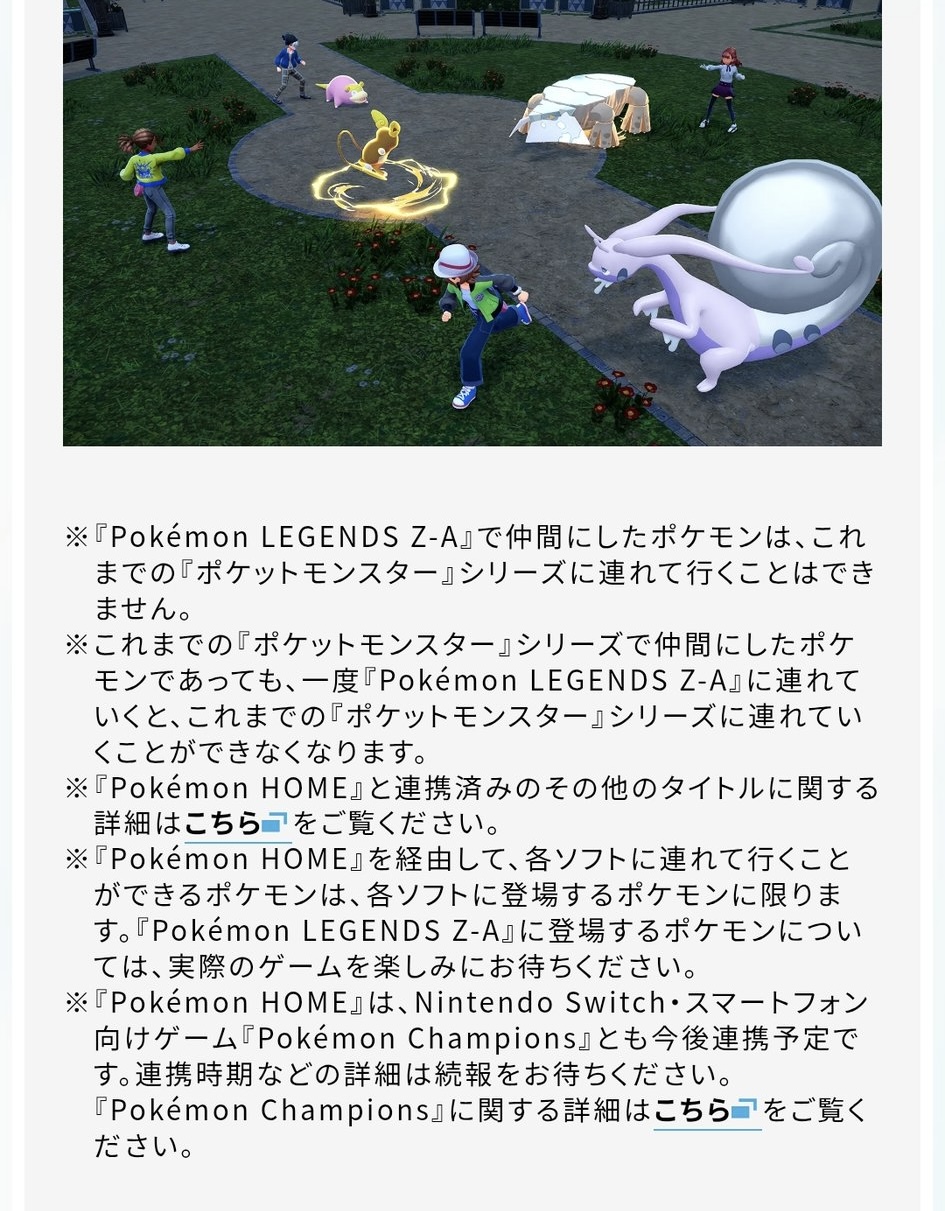 >2026年、『Pokémon LEGENDS Z-A』と『Pokémon HOME』の連携を予定しています。