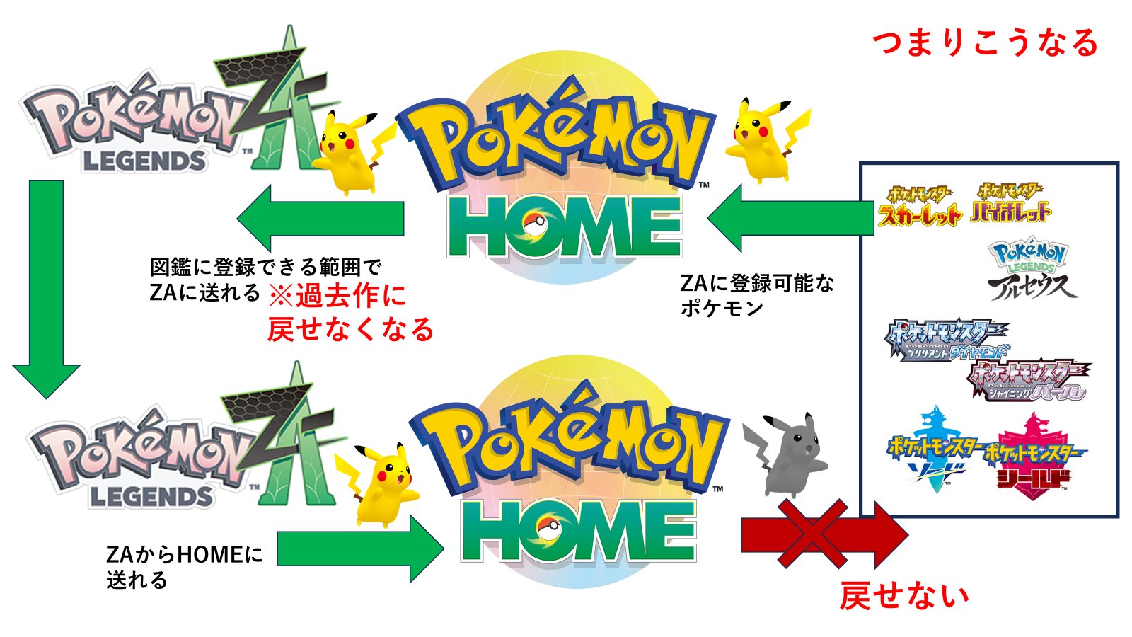 よく分からんが今後はZAでゲットしたポケモンはもう以降発売されるシリーズにしか送れないってこと?