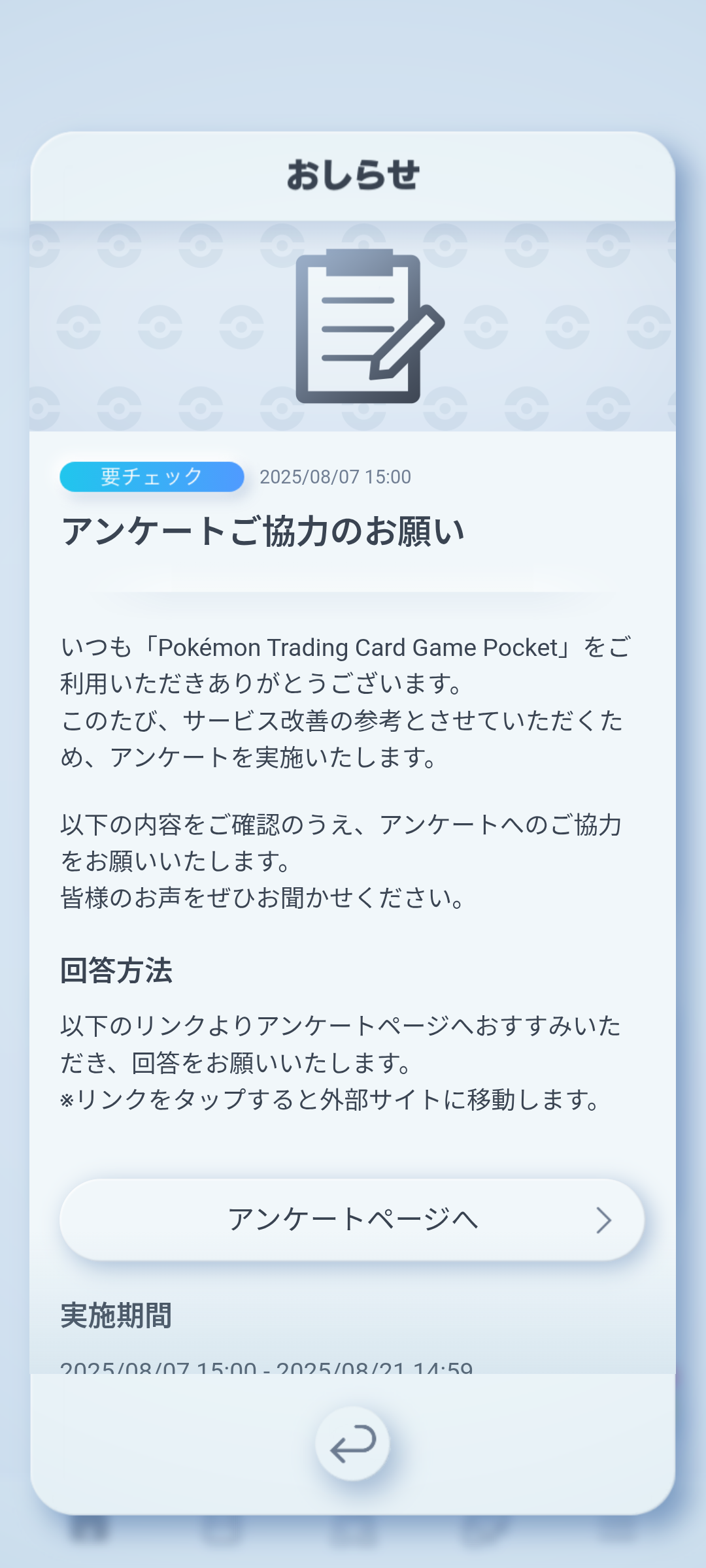 ゲーム公式からアンケートがある!ってことは