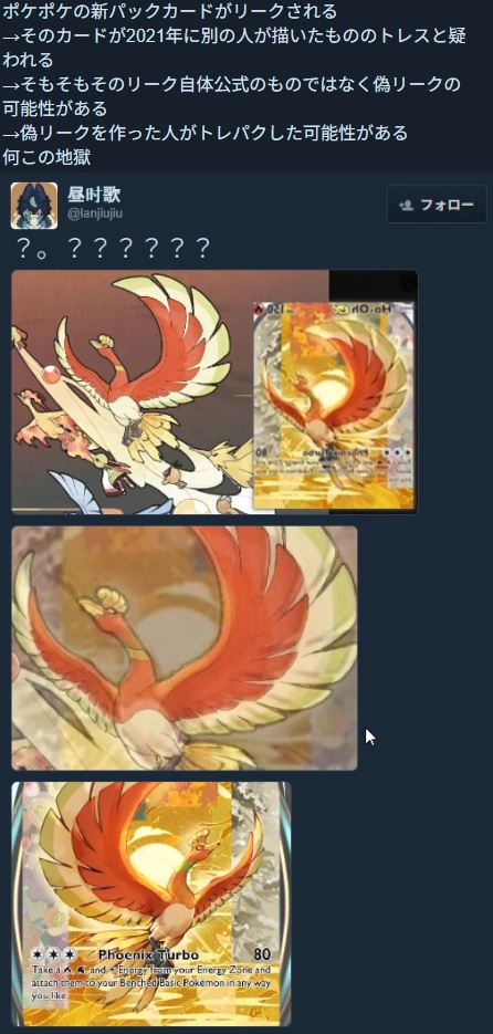 トレパクを主張してた絵師が制作過程を公開→なぜかホウオウだけ下描き済みの状態からスタート→翼のラインが完璧に一致するイラストが発見されトレパクと疑われている