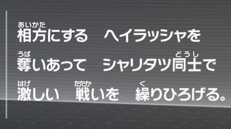 >手持ちの味方にシャリタツがいるなら、自身が場に出たとき45秒間交代不可・全能力上昇