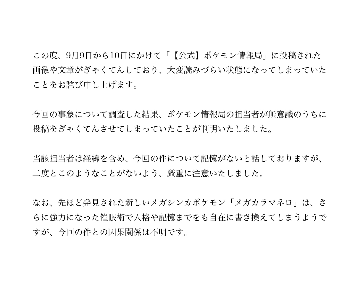 強力な催眠術の効果がさらに高まり、人格すら支配するという話も……https://t.co/G2B0qMIUVq #PokemonLegendsZA pic.twitter.com/ENvmboCNec— ポケモン公式 (@Pokemon_cojp) September 10, 2025