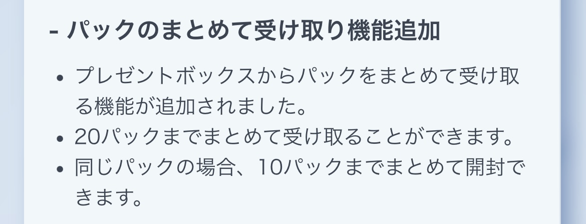 まとめて受け取りが試せるようにパック20コ配布しろ
