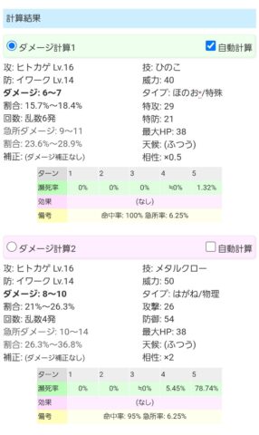 今計算機に突っ込んでみたがメタルクローとひのこのダメはほぼ変わらずややメタルクローの方がダメ出るかなくらいだった