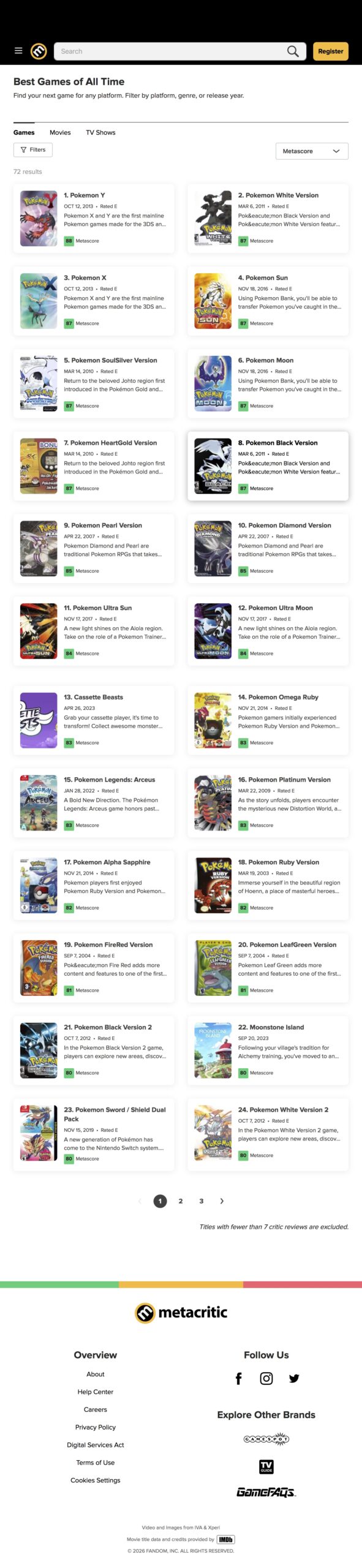3DSポケモンが妙に高いんだよなメタスコア…