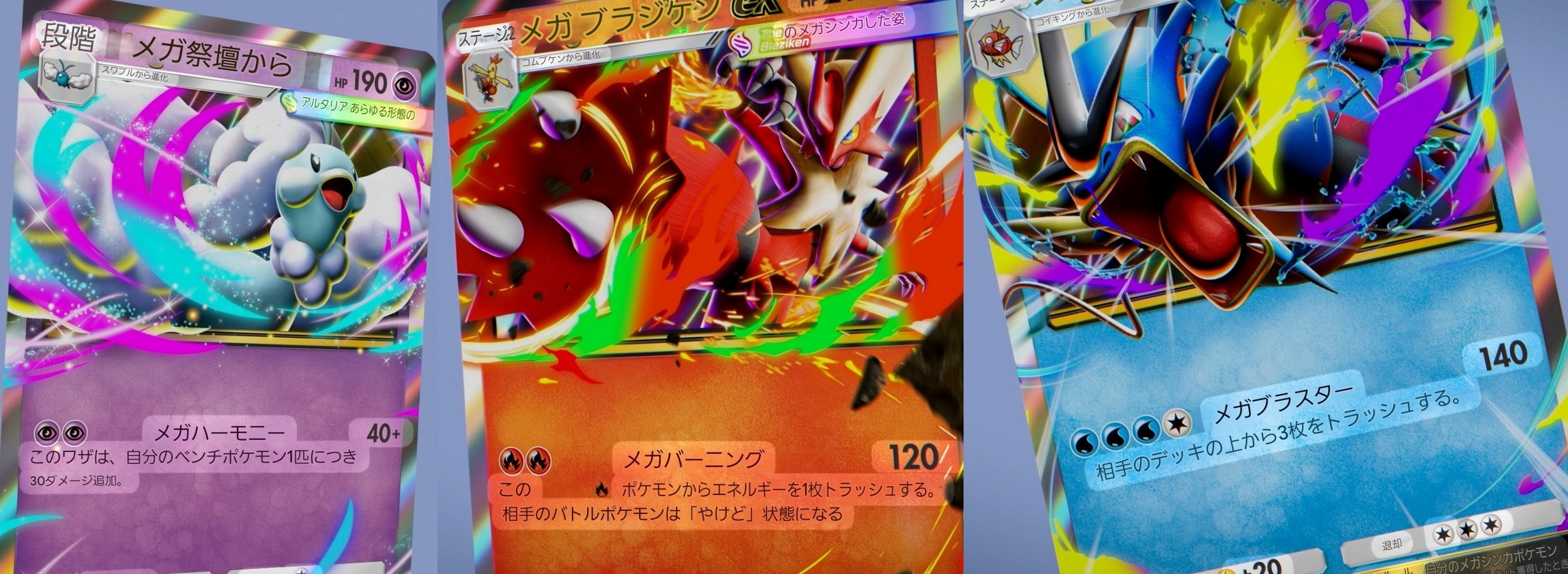 新たなデザインで描かれた多彩なメガシンカexのカードを手に入れて、開封やコレクション、バトルを楽しもう💪