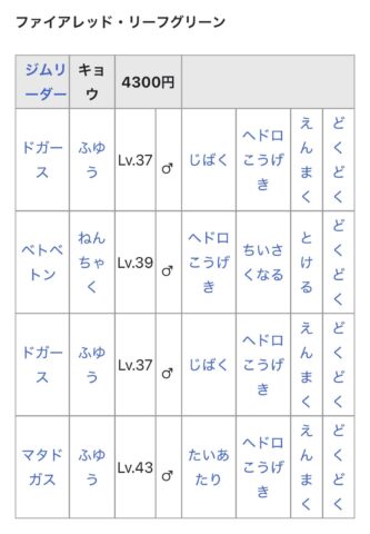 >FRLGは特にいやらしい戦い方してきて毒タイプって感じがする