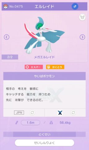 まあダブルの精神力メガエルレイド、シングルの切れ味エルレイドって感じで住み分けていただいて…