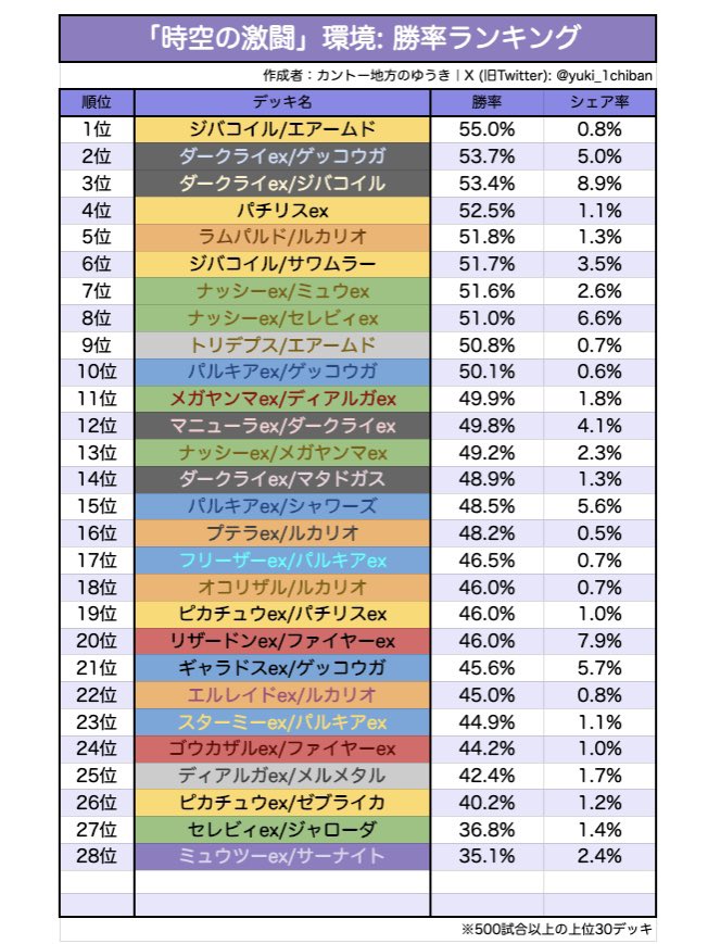 特にギャラは新パック発売後も優勝多かったのに大分環境変わったな