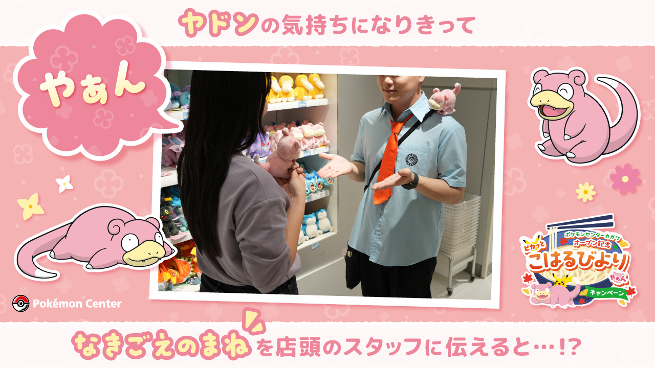 ヤドンのぬいぐるみ持ってたりキャンペーンのこと書いた板持ってたりするから
